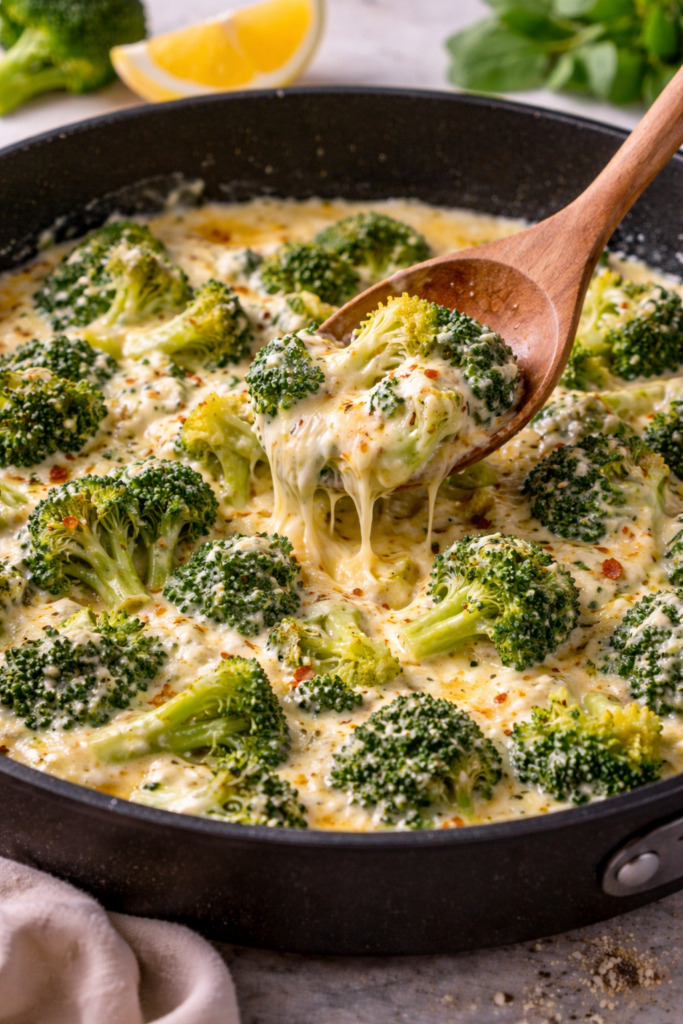 Diese cremige Brokkoli-Käse-Pfanne ist ein echtes Feierabendgericht.